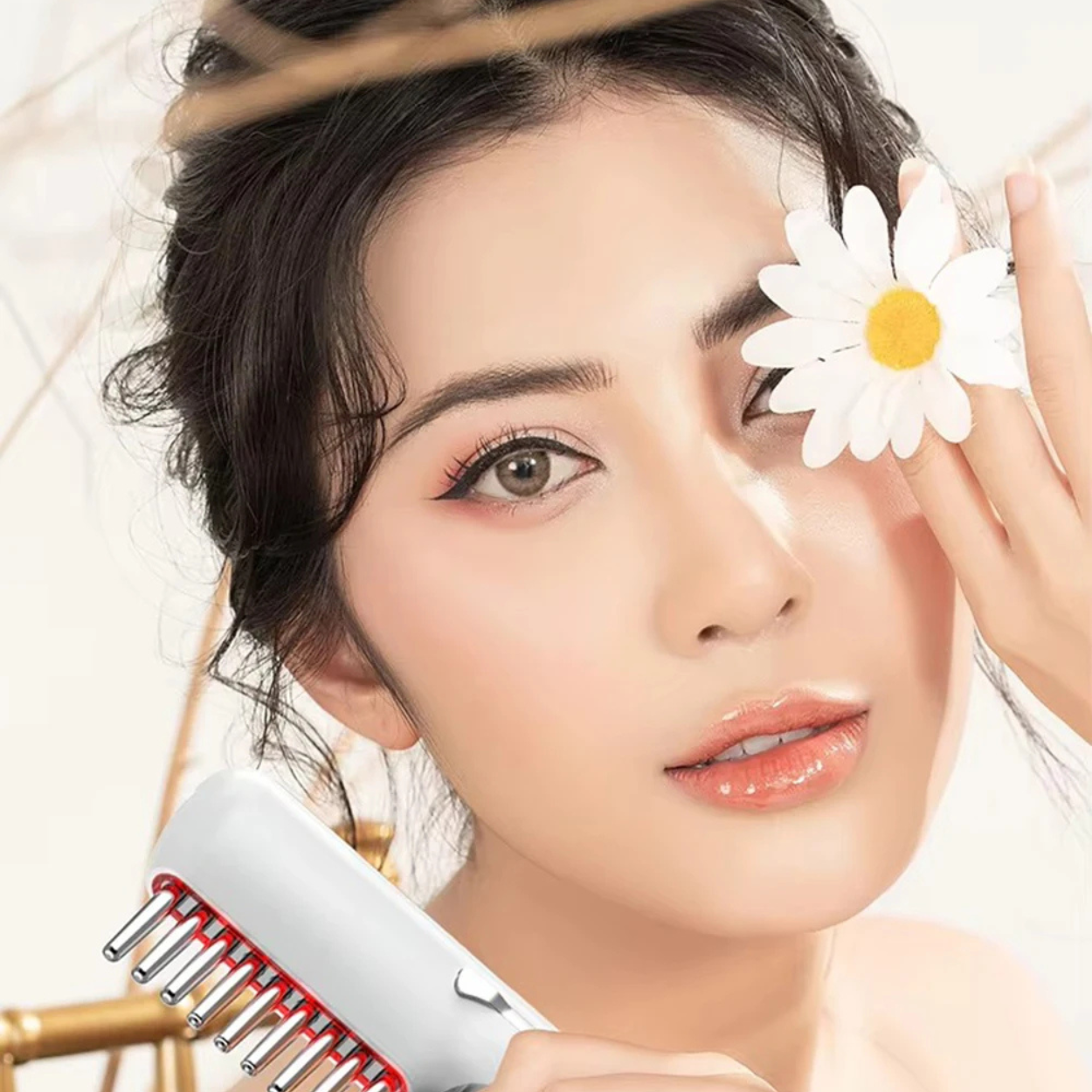 Entdecken Sie unseren revolutionären Kamm, der 5 fortschrittliche Technologien kombiniert, um die Gesundheit Ihrer Haare zu transformieren und Ihrer Kopfhaut neue Dichte zu verleihen.