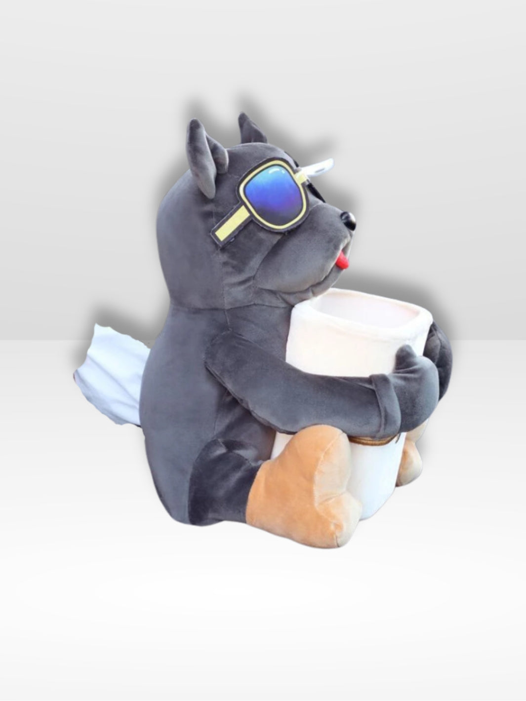 Unser Kuscheltier misst 33 cm Höhe x 27 cm Breite, die perfekte Größe, um auf die meisten Armlehnen im Auto zu passen.
