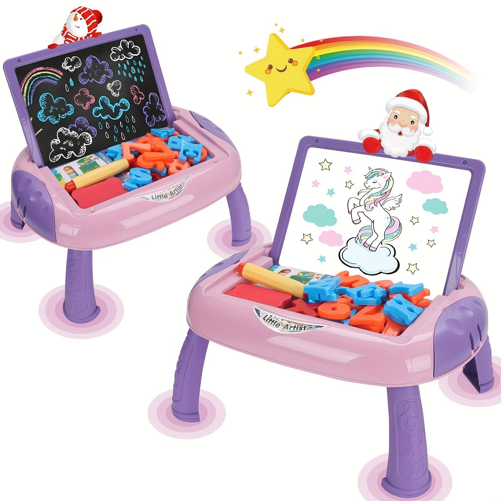 Die doppelseitige Maltafel ist nicht nur ein Spielzeug, sondern auch ein kraftvolles Lernwerkzeug. Lassen Sie Ihre Kinder ihre Kreativität grenzenlos entfalten und ihre Fantasie entwickeln, während sie spielerisch das Zeichnen, Schreiben sowie das Erkennen von Farben und Formen erlernen.